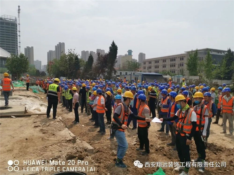 以人為本,安全發展!趕工期的同時,也要注意安全施工,延安新區全民健身運動中心項目部組織一線作業人員開展安全教育培訓,讓“安全為首,預防為主”的安全意識深入人心,確保安全施工。