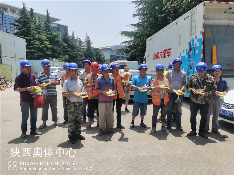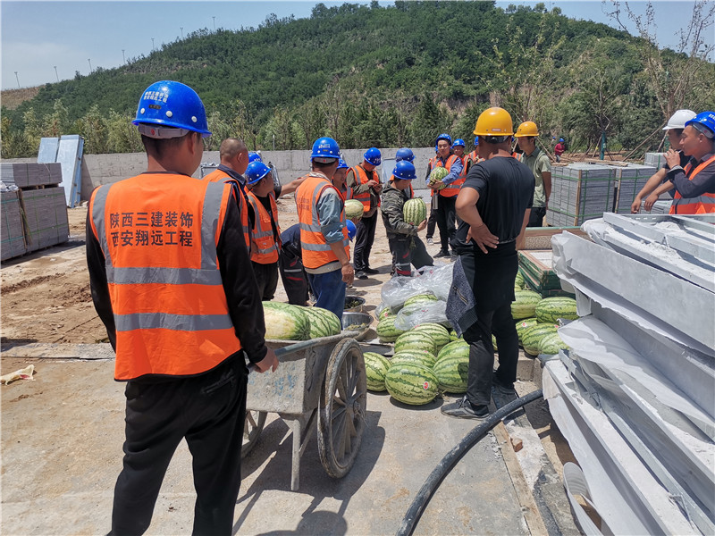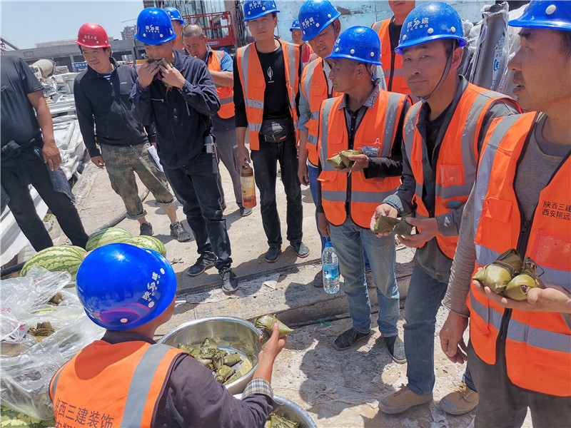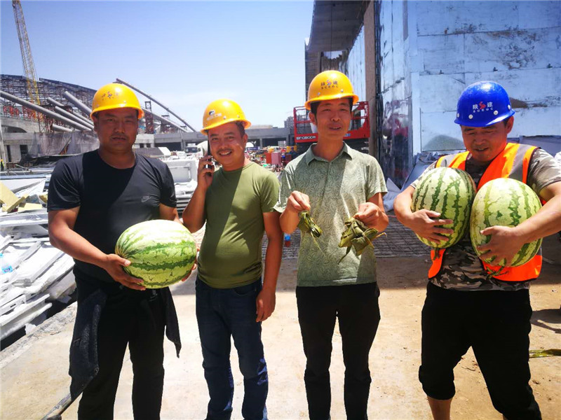 炎熱酷暑,高溫不斷,感謝一線管理人員和作業人員的辛苦奮戰,公司董事長親自趕往施工現場慰問一線人員,同時公司特意為一線施工人員帶去清涼和慰問,正值端午傳統節日,熱騰騰的糯米粽帶去真切的關懷。