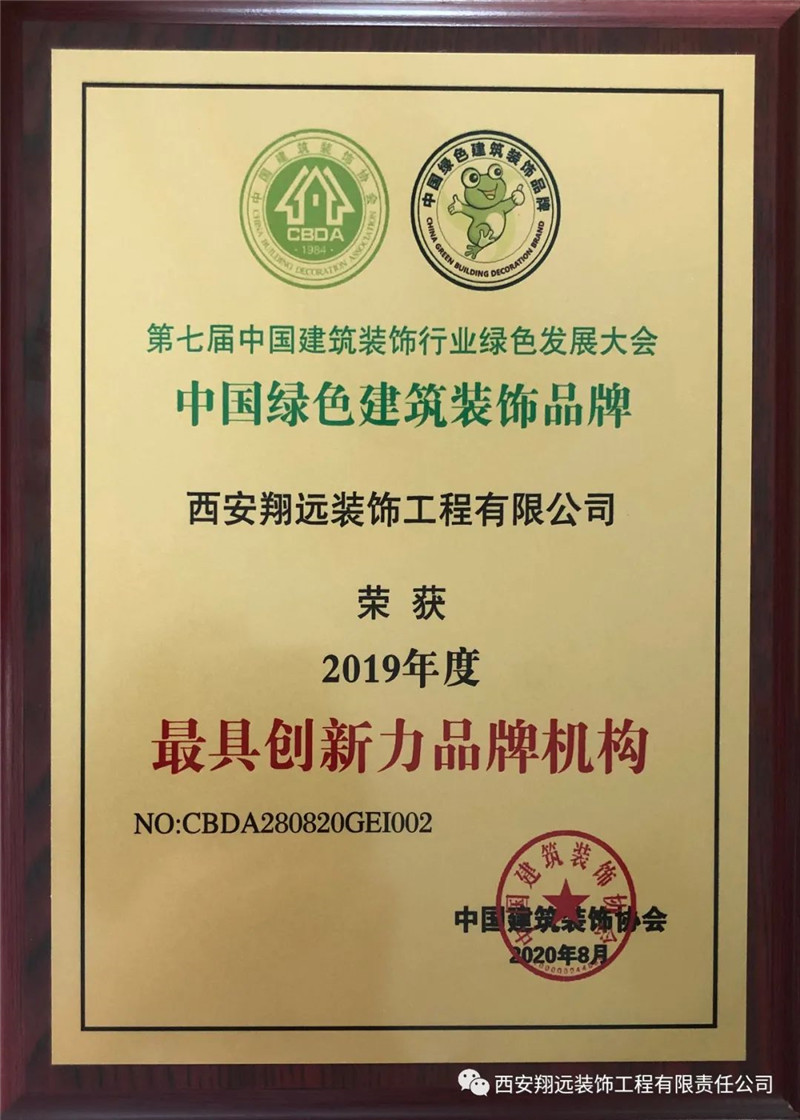 綠色智慧、引領未來-祝賀西安翔遠在第七屆中國建筑裝飾行業綠色發展大會榮獲one of the most創新力品牌獎
