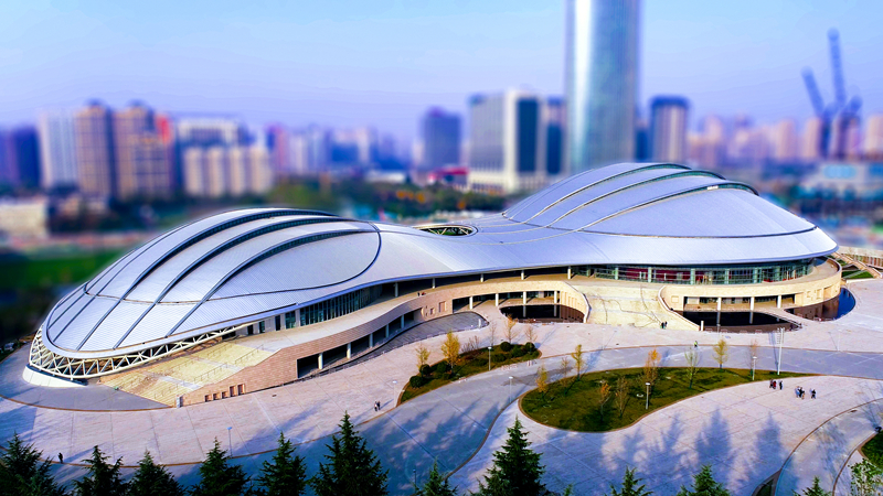 陜西奧體中心體育館位于陜西奧林匹克體育中心東北部,東臨唐延路,北接唐遺址公園,場館占地86603.6㎡,觀眾總坐席7048座,總建筑面積72450㎡,幕墻形式分為:大跨度曲面弧鋼鋁復(fù)合玻璃幕墻、異形鋁板幕墻、鎧甲式疊鋪石材幕墻、異形電動排煙窗等。陜西奧體中心體育館,屬于大型綜合性體育場館,其新穎的造型飄逸靈動,猶如大唐樂舞的絲帶,是陜西一張靚麗的“體育名片”。
