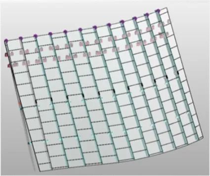 幕墻建筑多為曲面,定位復(fù)雜,幕墻立面與球形屋面交接部位高低起伏大且非規(guī)則形狀;屋面網(wǎng)架結(jié)構(gòu)跨度較大,風(fēng)壓作用變形對立面幕墻影響大;曲線形狀且平面尺度大、收邊收口多。