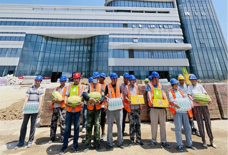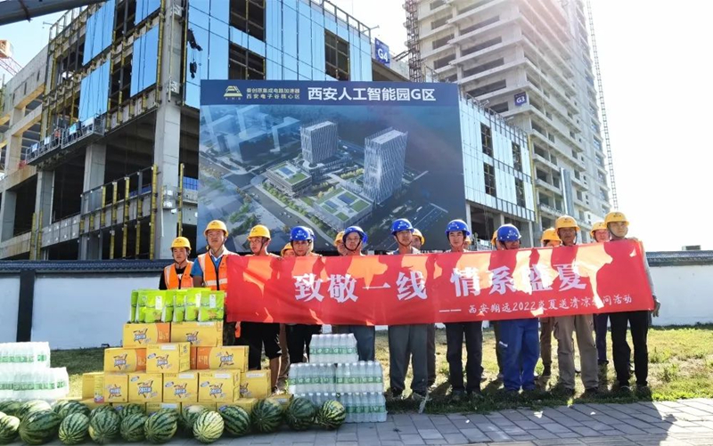 炎炎夏日,目前正值高溫天氣,酷熱的天氣給堅守在一線工地的工人師傅們帶來更多的挑戰,汗水一次又一次的浸濕了身上的衣服,西安翔遠裝飾工程有限責任公司是一個注重人文關懷的大家庭,實時關注高溫天氣還在戶外工作的工人們身體健康狀況和生命安全,為在一線高溫工作的工人們送去夏日清涼、送去關懷。