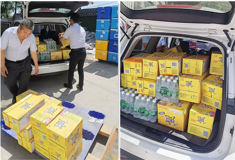 公司副總經理梁森及采購部經理吳福治親自裝車帶隊將一箱箱解暑降溫的飲料、西瓜、綠茶、藿香正氣水等降溫品送到一線工人手中,送清涼活動不僅僅是送去公司的清涼和關懷,更是極大的鼓舞了一線工人師傅們的士氣,為保質保量完工交付提供有效的后勤保障!