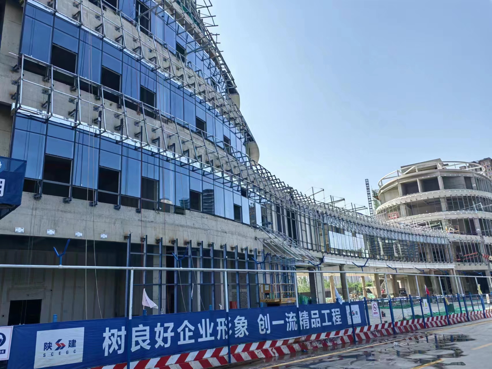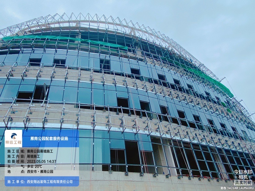 雁南公園服務(wù)配套設(shè)施項(xiàng)目是我司重點(diǎn)工程之一,該項(xiàng)目施工任務(wù)重,工期要求緊,公司領(lǐng)導(dǎo)高度重視,所有人員全力以赴為其質(zhì)量、工期、進(jìn)度保駕護(hù)航;在公司領(lǐng)導(dǎo)的帶領(lǐng)及支持下,項(xiàng)目部迅速組織勞務(wù)隊(duì)伍進(jìn)場(chǎng),現(xiàn)階段已完成圖書館玻璃幕墻3000余平米,安裝進(jìn)度達(dá)到80%,鋁板龍骨完成9000余平米,安裝進(jìn)度達(dá)到90%,文化館玻璃幕墻2000余平米,安裝進(jìn)度達(dá)到60%,鋁板龍骨完成1500余平米,安裝進(jìn)度達(dá)到15%,在今后的施工中,項(xiàng)目部及作業(yè)人員發(fā)揚(yáng)吃苦耐勞精神,克服種種困難,戰(zhàn)勝各種不利因素,積極推進(jìn)施工進(jìn)度。