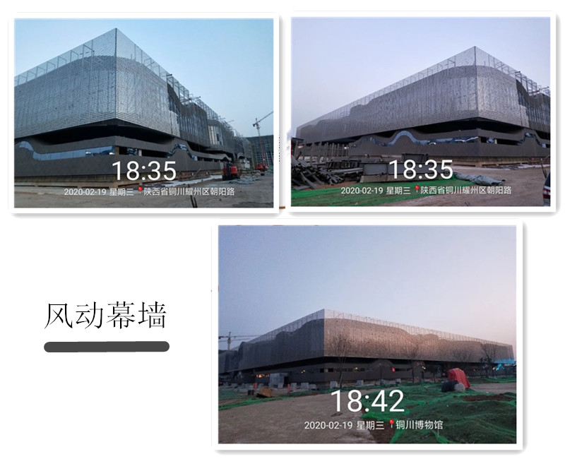 銅川博物館是“十三五”期間全國地市級博物館建設重點項目,是完善銅川城市功能、構建 城市綜合文化體的重要民生工程,是提升文化軟實力和積極融入“一帶一路”國家戰略的重要舉措。本項目外幕墻工程采用40余種幕墻材料,多種幕墻形式組合,其中以風動幕墻系統標準化設計、精細化加工、裝配式施工為項目亮點,為公司積累寶貴經驗。
